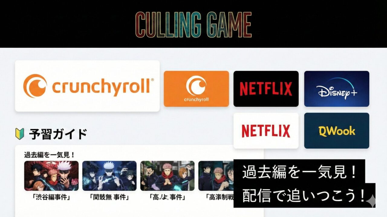 もし記憶が曖昧になっているなら、放送前に渋谷事変の最終話だけでも見返しておくことを強く推奨します。